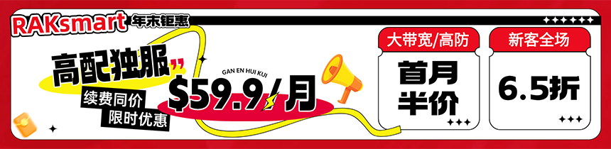 近日RAKsmart针对国外VPS推出限时首月2折优惠,涵盖美国2区(硅谷/洛杉矶/西雅图)、香港2区、日本2区、新加坡2区、韩国2区、马来西亚2区数据中心,大陆优化VI…… -